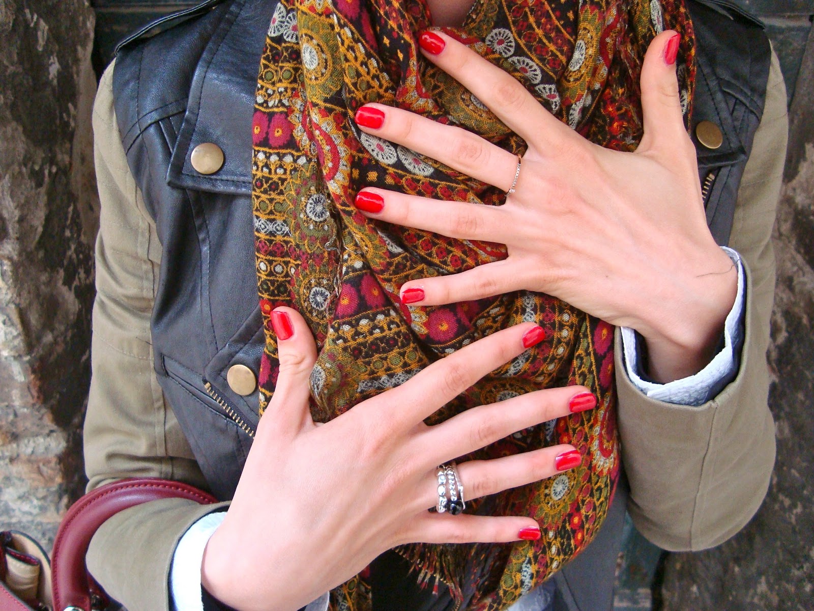 IT: Oggi, passeggiando per il centro della mia città, con il solito shopping giornaliero, stavo cercando insieme al mio ragazzo/fotografo, un posto dove scattare alcune foto per l’outfit di oggi, quando è stato il momento ci siamo ritrovati in una via dove c’era questa fantastica porta rovinata e antica con un bellissimo particolare sopra di se, ovvero un albero con delle foglie verdissime che copriva il tutto e rendeva il passaggio quasi fiabesco. Appena abbiamo trovato questa location abbiamo scattato qualche foto per mostrarvi il mio look per questo sabato piovoso. Il mio outfit consiste in un abbigliamento casual adatto a tutti i giorni, composto da una camicia bianca di cotone ricamata, un pantalone di colore verde militare e un paio di stivali neri artigianali. Come giacchetto sopra ho voluto abbinarci uno che in qualche modo potesse riprendere i colori da me indossati in questa giornata ovvero uno bicolore, nero e verde. Per spezzare i colori di questo look ho abbinato una sciarpa multicolorata. Come accessori ho aggiunto un paio di orecchini fucsia di una nota marca francese e una tra le borse che preferisco, cioè la Dior Diorissimo.