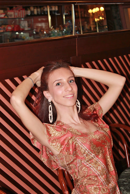 En el post de hoy os quiero mostrar un look perfecto para un día soleado como hoy. Si te has dado cuenta que cambié ubicación con este equipo, abandoné los lugares al aire libre para mostrar una barra en mi ciudad, que es ante todo un lugar de encuentro para tomar una copa y quizá intercambiar algunas palabras con los amigos. Sin siquiera hacerlo a propósito comencé mi mirada a través de los colores del lugar donde tomé estas fotos, que da un toque de estilo retro de la colección. Hoy me puse un vestido de luz simple que tiene la particularidad de tener un arco en la espalda, en la parte posterior. Esto lo combina con un marrón bailarina quemado, must have todas las chicas que amamos a caminar sobre el flat cómodo y una bolsa muy bien conocido en el campo de la moda internacional o el Jumbo Chanel.