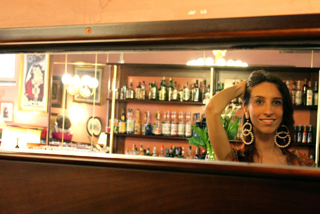 With today’s post I want to show a perfect look for a sunny day like today. If you noticed I changed location with this outfit, I abandoned the outdoor venues to show a bar in my town, which is primarily a meeting place for a drink and maybe exchange a few words with friends. Without even do it on purpose I started my look through the colors of the location where I took these pictures, giving a touch of retro style to the collection. Today I wore a simple light dress which has the peculiarity of having a bow in the back, on the back. This I paired with a ballerina brown burnt, must have all us girls who love to walk on the comfortable flat and a bag very well known in the field of international fashion or the Chanel Jumbo.