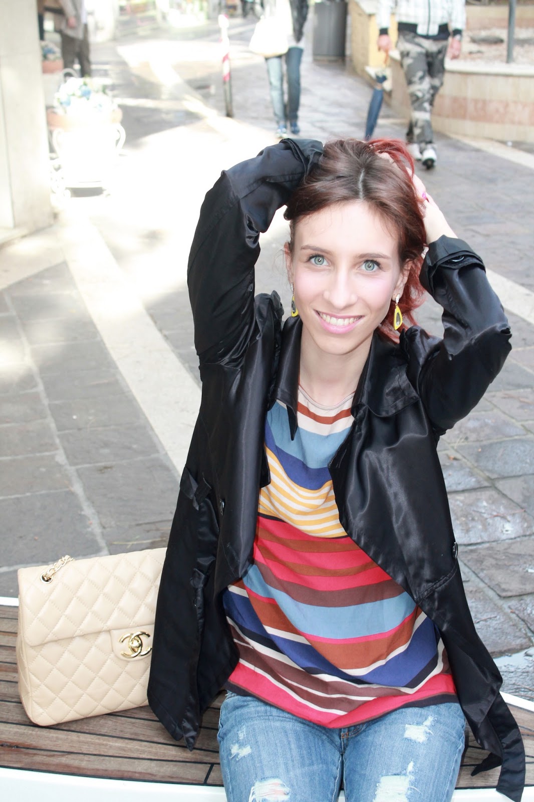 Sé que lo hice en una de mis ciudades favoritas para ir de compras y para la gente que vive allí, en Riccione. Hoy en día, dado el buen día, pensé que jugaría con los colores de mi look con tonos como el amarillo y beige, ideal para esta tarde soleada.