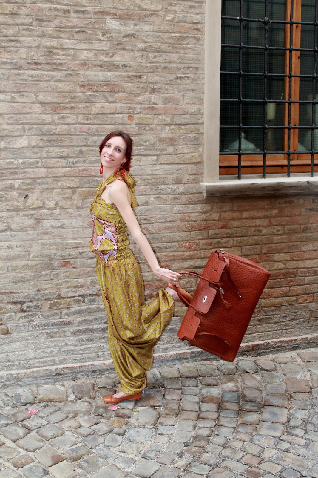 Il mio è stato un inizio abbastanza tranquillo, giornata soleggiata e calda, ne approfitto per proporvi un nuovo outfit, comodo, versatile e soprattutto fresco composto da una maxi tuta a fantasia e delle semplici ballerine, comunemente chiamate flat. Ho pensato solo di aggiungere a questo look degli accessori per personalizzarlo e renderlo mio, ovvero degli orecchini, un ferma capelli e una maxi bag con stampa di struzzo.