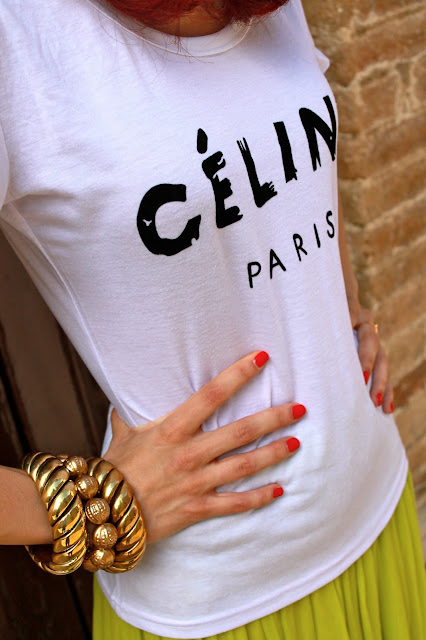 ES: ¿Qué podría ser mejor que algunos colores agradables para este verano 2013? Nada! Hoy he decidido colorarmi algunos varios tonos que combinan juntos pueden crear un look veraniego perfecto y cómodo. Oro, verde, amarillo, blanco, rosa, púrpura y negro, perfecta con los demás. Para cambiar un poco, decidí usar un accesorio de oro, en particular, comprobar, cuando puse la bolsa, nunca había visto un inspirado tan chic y sofisticado.