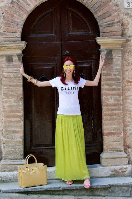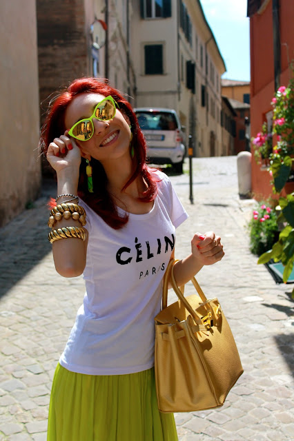 EN: What could be better than some nice colors for this summer 2013? Nothing! Today I decided to colorarmi some combining various shades together can create a perfect summer look and comfortable. Gold, green, yellow, white, pink, purple and black, perfect with each other. To change a little bit I decided to wear an accessory gold, particular, check, as I put the bag; never seen an inspired so chic and sophisticated.