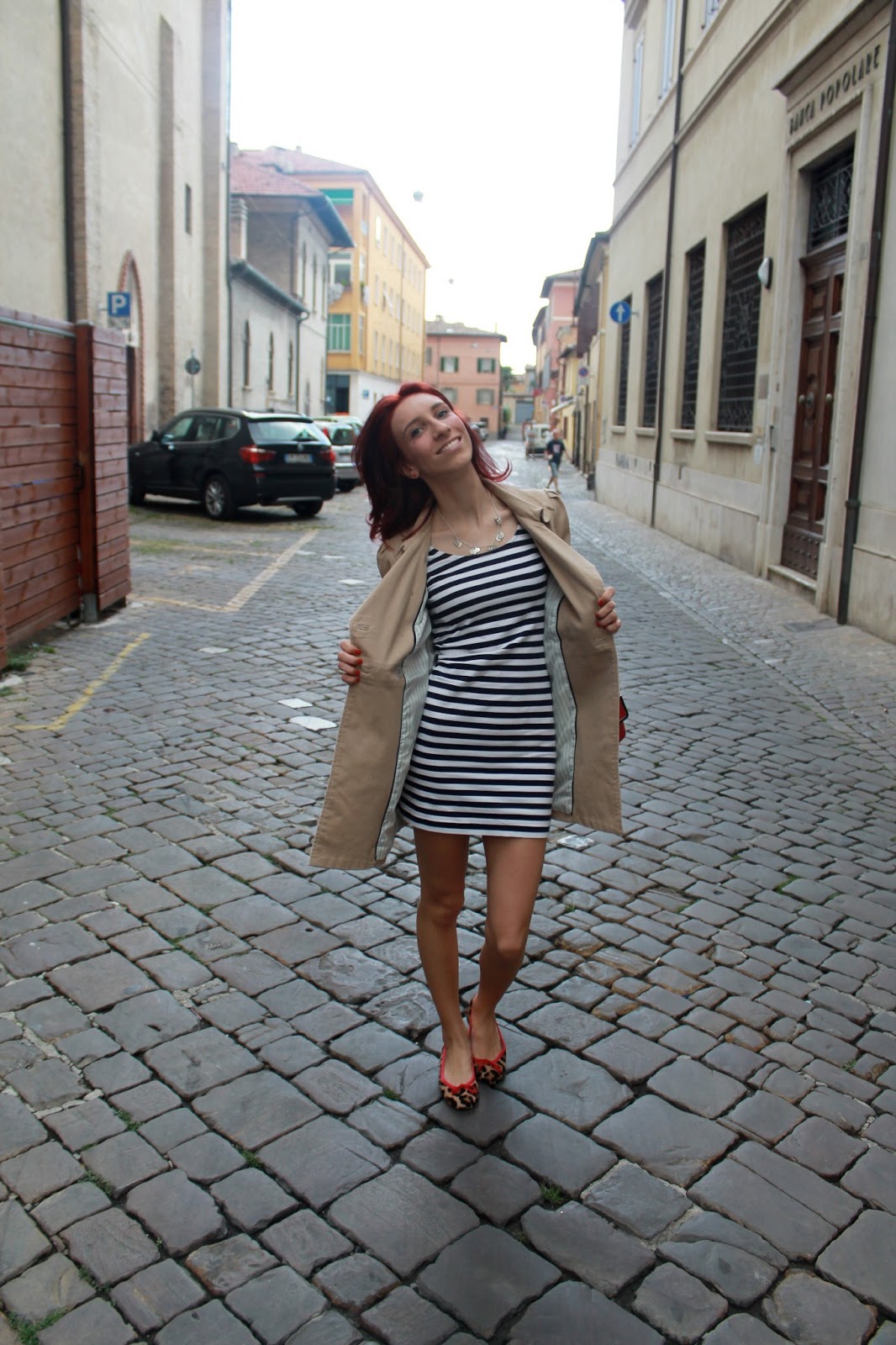 IT: Buongiorno miei cari lettori! Come procede questa estate? Ho deciso di svernare un pò con il mio look, mettendo un vestito a righe bianche e blu con sopra un trench beige di cotone. Come scarpe ho utilizzato le famose Pretty Ballerinas leopardate e come borsa la storica Chanel collezione crociera. Vi piace questo look per una passeggiata estiva?