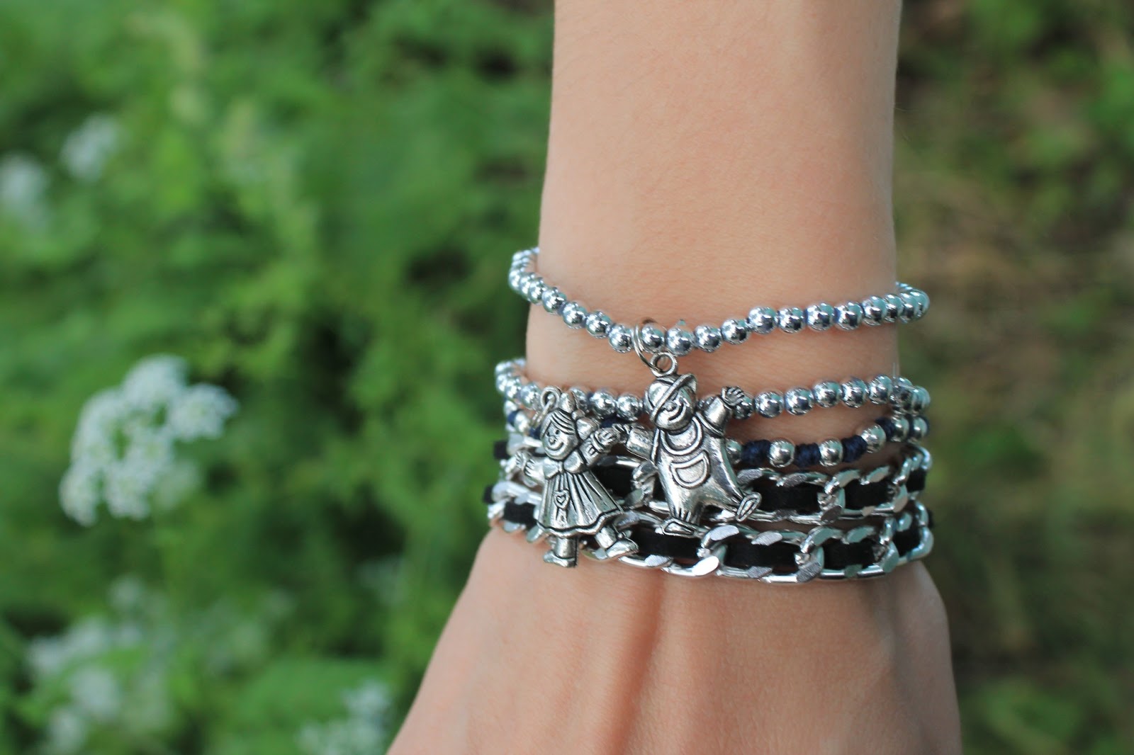 ES: Esta tarde me decidí a crear un look romántico, el que más me conviene, hecha de una malla con bordados que parecen encajes de fantasía, estilo retro, combinado con un par de aretes del mismo color. Para personalizar el asunto y hacerlo mío he añadido una chaqueta negro simple, una pareja de bailarines y el histórico Hermès Birkin. ¿Le gusta este equipo?
