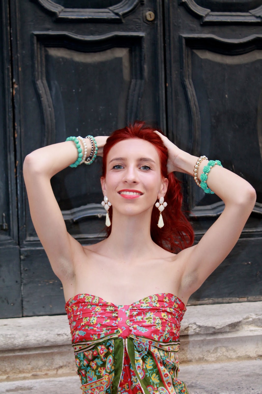 IT: Outfit estivo, che ne dite? Io amo questo tipo di vestiti, leggeri, comodi e soprattutto perfetti per questo tipo di temperature perchè freschi. Ho abbinato questo capo a dei sandali gioiello di colore bianco e a degli orecchini pendenti della stessa tonalità. Come borsa ho deciso di spezzare il tutto con il colore presente nel vestito a fantasia, verde acqua, e dagli un tocco in più di stile ed eleganza mettendo intorno al manico della Birkin inspired una specie di foulard della stessa fantasia del vestito indossato.