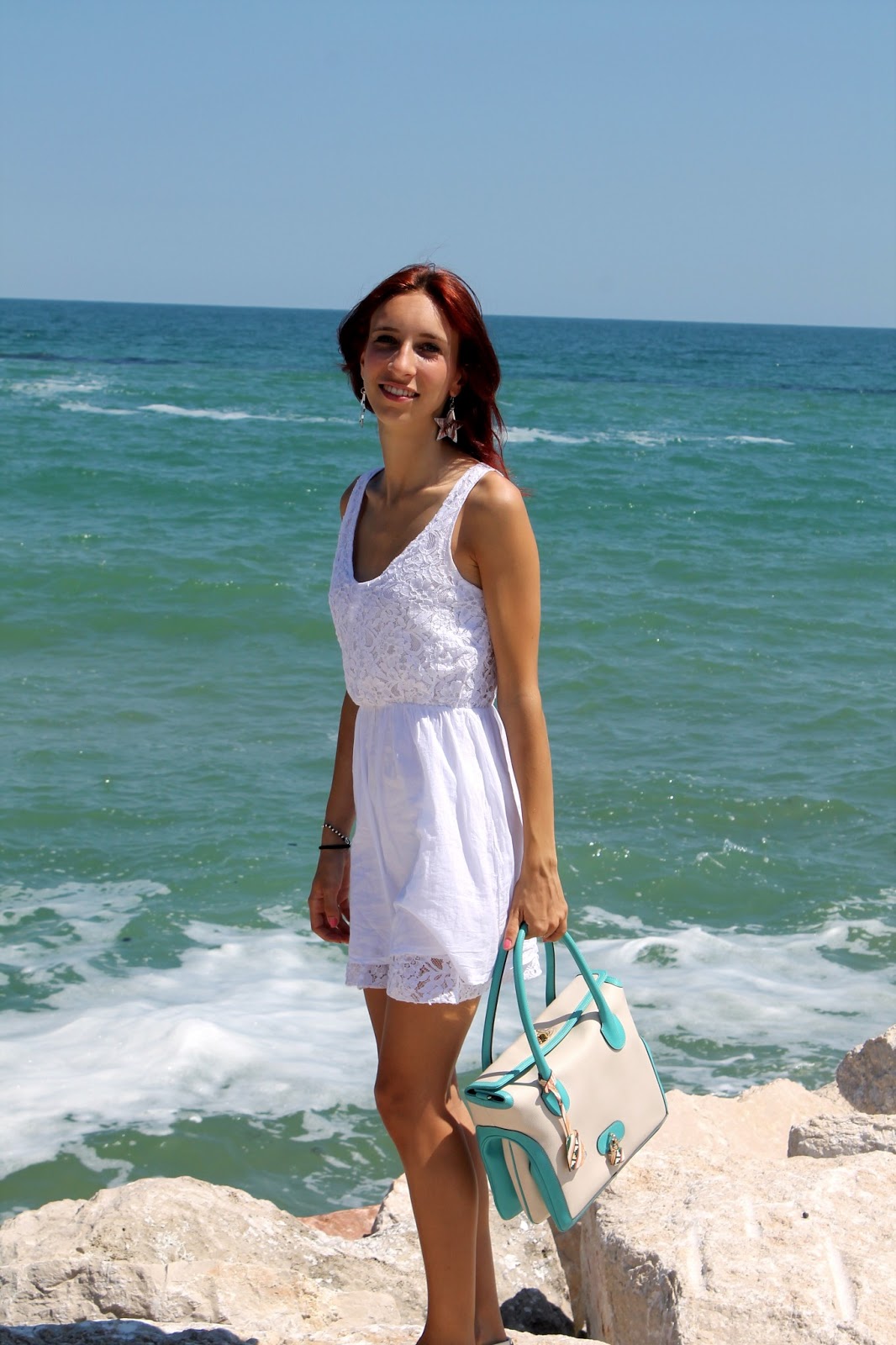 IT: Ho già indossato questo abito parecchie volte ma, per un motivo o per un altro non l’avevo ancora condiviso sul blog. Questa estate ho comprato molti vestiti bianchi, è il colore che preferisco quando sono abbronzata, oggi ho voluto indossare questo abito corto abbinandolo a un paio di sandali glitterati con rifiniture azzurre e alla borsa di Emilio Pucci dello stesso colore, come accessori ho pensato di perfezionare il tutto con degli orecchini pendenti argentati a forma di stella.
