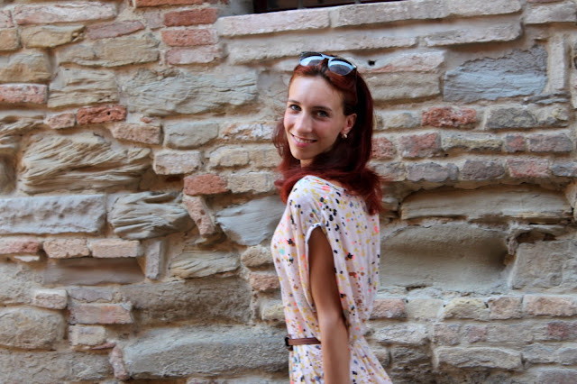 ES: El protagonista de hoy es sin duda el vestido que llevo, colorido y muy cómodas. Quería darle un toque especial a este aspecto mediante la adición de un cinturón de cuero a la cintura, y otros accesorios como sandalias tejidas y la bolsa, con su forma me recuerda a un modelo vintage.