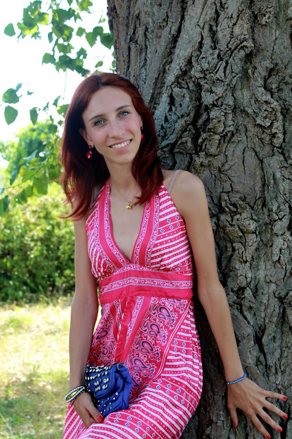 IT: Questi sono alcuni scatti di un look che ho indossato oggi, in una location naturale, in mezzo al verde. Adoro la combinazione del fucsia e del blu, due colori che possono creare un look urbano e chic insieme.
