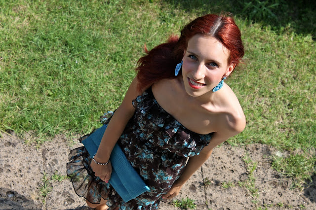 ES: Los trajes de hoy se compone principalmente de dos colores juntos que realmente me gusta, o marrón y azul, esta combinación de tonos en mi piel es perfecta para él también lo siento, demasiado claro, un camino intermedio, por lo que hoy he decidido crear este look, que consiste en un vestido corto con estampado de flores, una bolsa de embrague python y un par de aretes que reflejan los colores del vestido.