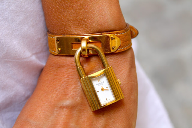 ES: Esto no es un día muy soleado decidí construir una mirada un poco diferente de la usual complemento a un sencillo vestido blanco de un chaleco de algodón y una cinta en la cintura. En cuanto a los accesorios que quería perfecto todo es moderno, con objetos, como el embrague que se asemeja a la estructura de Hermès y sandalias de gladiador, y piezas de época, como aretes, collar, etc.