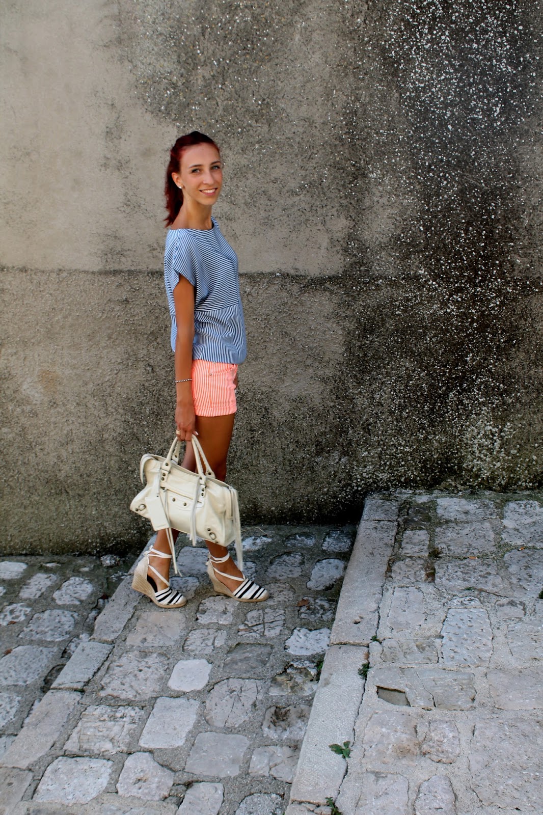 EN: First day of vacation in one of the most beautiful places I’ve ever seen, in the middle of nature where the scents of the area you immediately notice when you wake up. Today to begin this week of relaxation, I decided to create a look very colorful and above all stripes, consisting of a jacket, shorts and wedges.