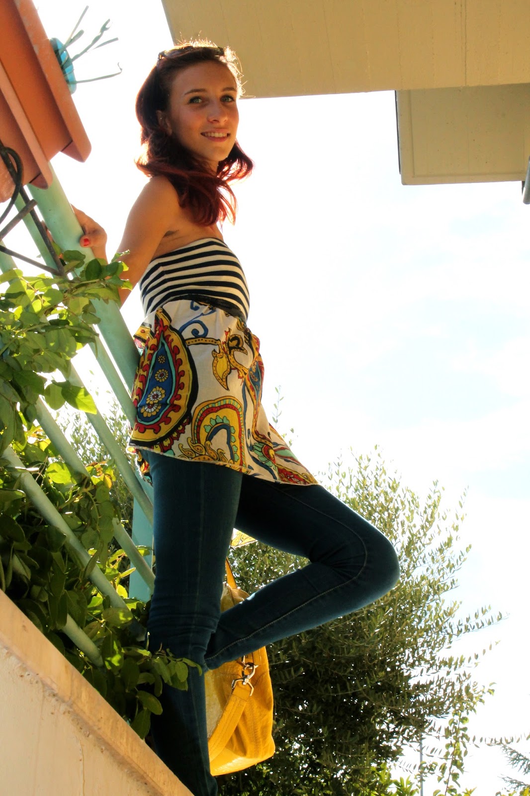 IT: Buon mercoledì pomeriggio, manca poco alla mia partenzaper la Milano Fashion Week, in questi giorni mi sto preparando al grande eventoche per me, purtroppo, durerò solo tre giorni. Intanto per oggi vi voglio mostrare un outfit che ho creato, molto colorato e semplice, top a fascia, jeans, ballerine e borsa color giallo lime.