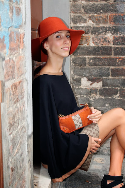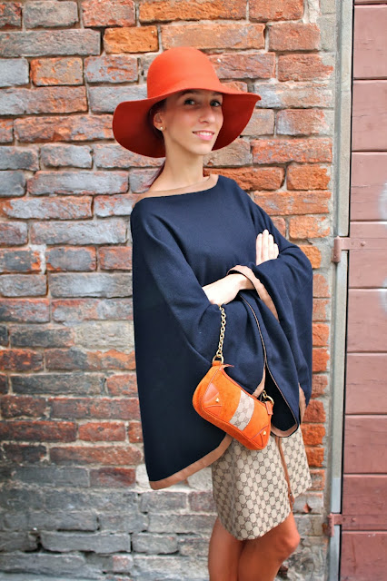 EN: The hats can give a touch of class and elegance when worn with classic garments and never go out of fashion, as the cape that I show you today, a must have this winter, views, and straviste by famous people and models. Today I decided to pair it with a skirt monogrammed Gucci bag in a two-tone always the same brand, for a pair of sandals and a hat of course, wide-brimmed orange.