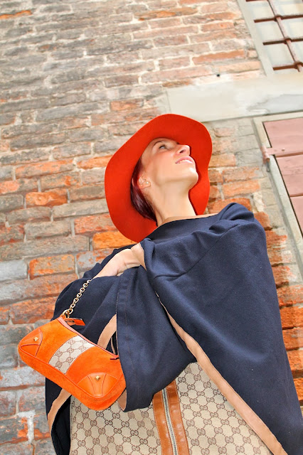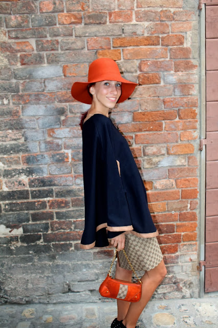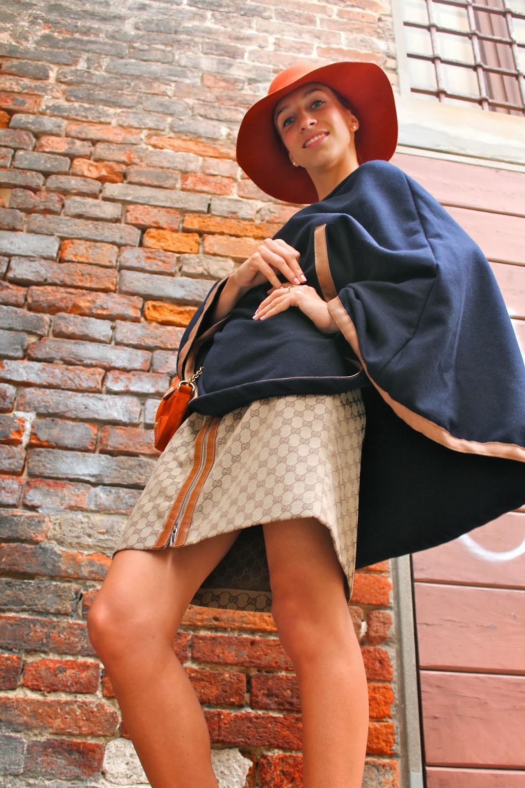 EN: The hats can give a touch of class and elegance when worn with classic garments and never go out of fashion, as the cape that I show you today, a must have this winter, views, and straviste by famous people and models. Today I decided to pair it with a skirt monogrammed Gucci bag in a two-tone always the same brand, for a pair of sandals and a hat of course, wide-brimmed orange.