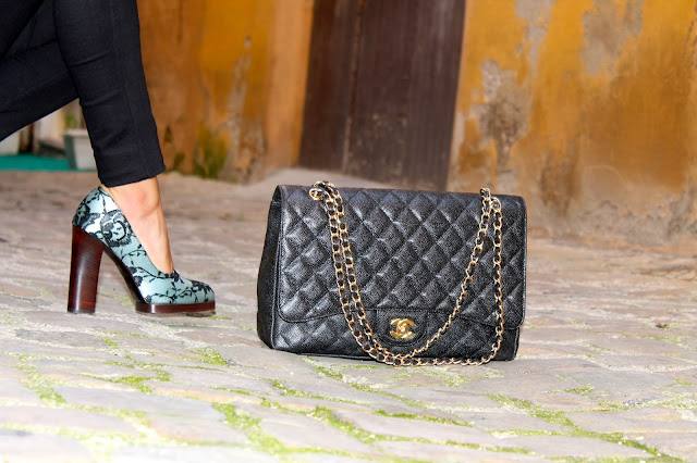 ES: Hoy os enseño un look con estilo, pero también puedo ser perfecto para una tarde de otoño, un abrigo, una camisa de lunares y un par de pantalones negros, con el pie de los zapatos de tacón alto con encaje bordado. En cuanto a los accesorios que pensé que no apostaría mucho en la ropa y agregue dell’outfit.