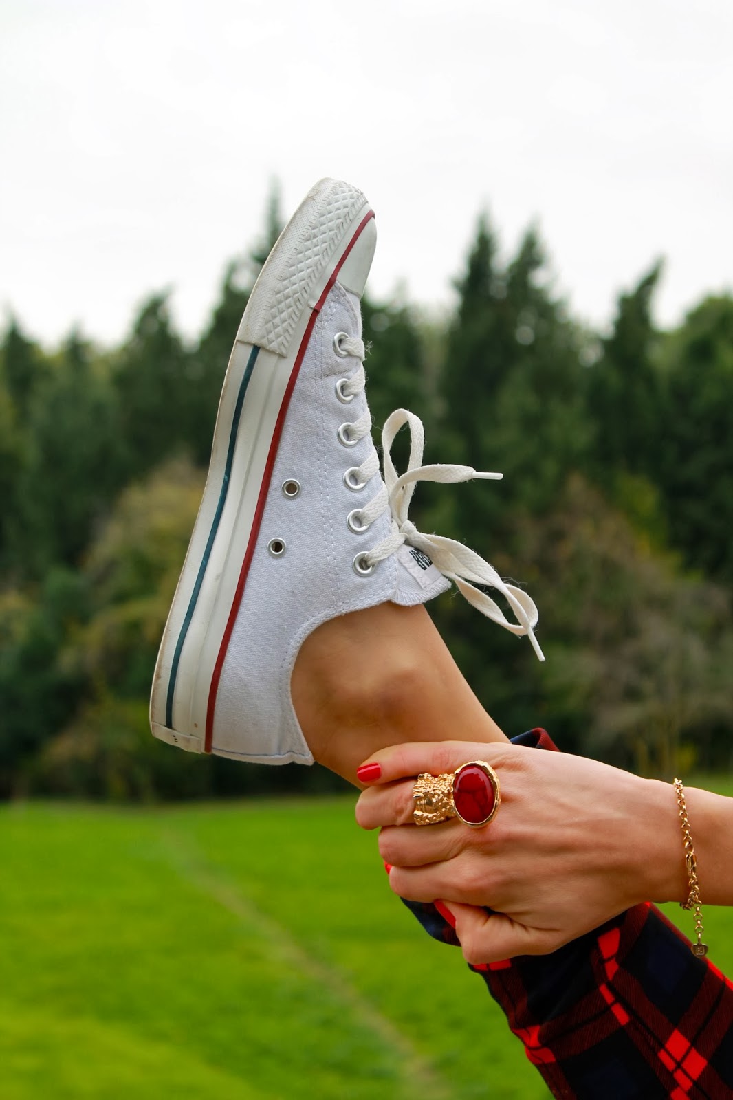 IT: Ecco alcune foto scattate in uno dei parchi della mia città, forse il più bello e il più grande, ogni volta che vengo qui non so perché ma mi fa sempre piacere, mi ricorda la mia infanzia e quando giocavo in compagnia. Raramente mi vesto sportiva, sicuramente lo stile che mi appartiene di più è quello elegante e classico ma oggi ho voluto fare una cosa diversa, indossare le comuni Converse e personalizzarle con il mio look, ci sono riuscita? Cosa ne pensate?