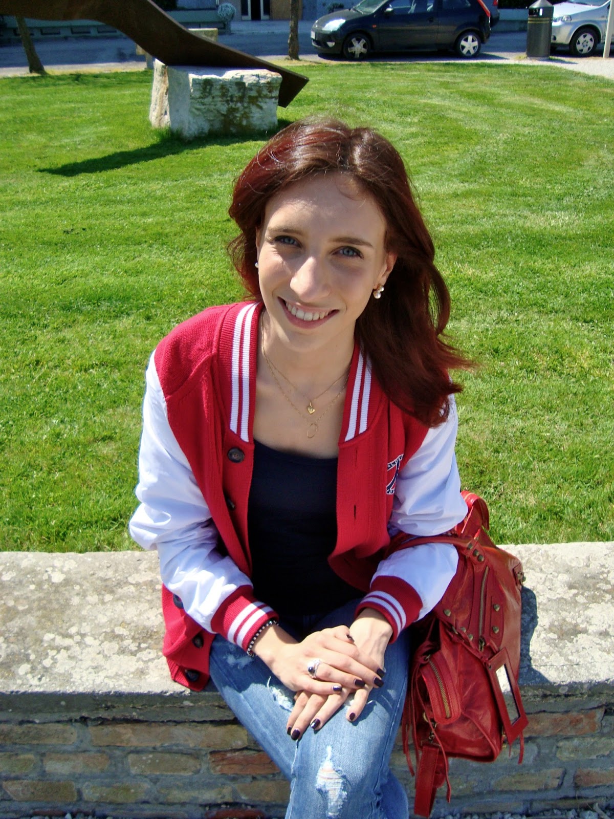 EN: And here’s my outfit today! A day to say the least perfect for a stroll on the beach, considering the temperatures and good weather. An outfit in strong colors and soft. The shirt that I wore today is simple, plain blue, with over a kind of collage style sweatshirt called” why” refers to felpone worn in collage Americans, Italian crafted by us especially this year! I wanted to combine these two leaders in ripped jeans and sports, with the foot the classic Superga, never out of fashion. Another is rather new in the bag that I wear red. I leave you with the photos and I wish you a good afternoon!